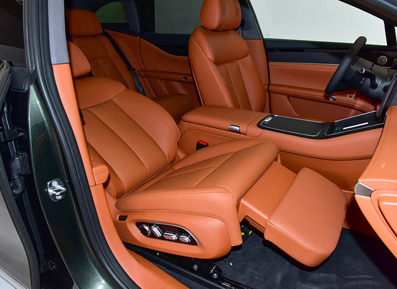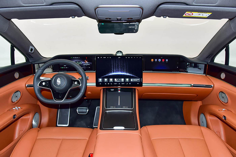 内饰方面,享界S9T采用了全新寰宇的智能座舱,并提供了赤茶橘、松露棕、白沙杏、琥珀棕这4种配色可选。座舱内配有带脱手感应的线英寸副驾娱乐屏,车机内置了鸿蒙智能座舱4.0,拥有小艺智慧助手,可自定义组合的空调、灯光、车窗、香氛、音乐等。另外,车内还配有流媒体内后视镜,并支持选装电子外后视镜。
