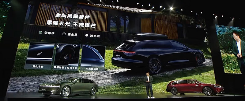 车尾造型敦实,全新设计的贯穿式星云尾灯组最为抢眼,内部还采用了多层映射,在视觉上能营造出“星河”的既视感。新车还提供有仙踪绿、流光银、寰宇红、浩宇蓝、鎏金黑、深空灰这6种配色可选。另外,享界S9T也同样提供黑曜套件可选装,包括黑色车标、黑色窗框、21英寸黑曜星辉轮毂、红色刹车卡钳等。